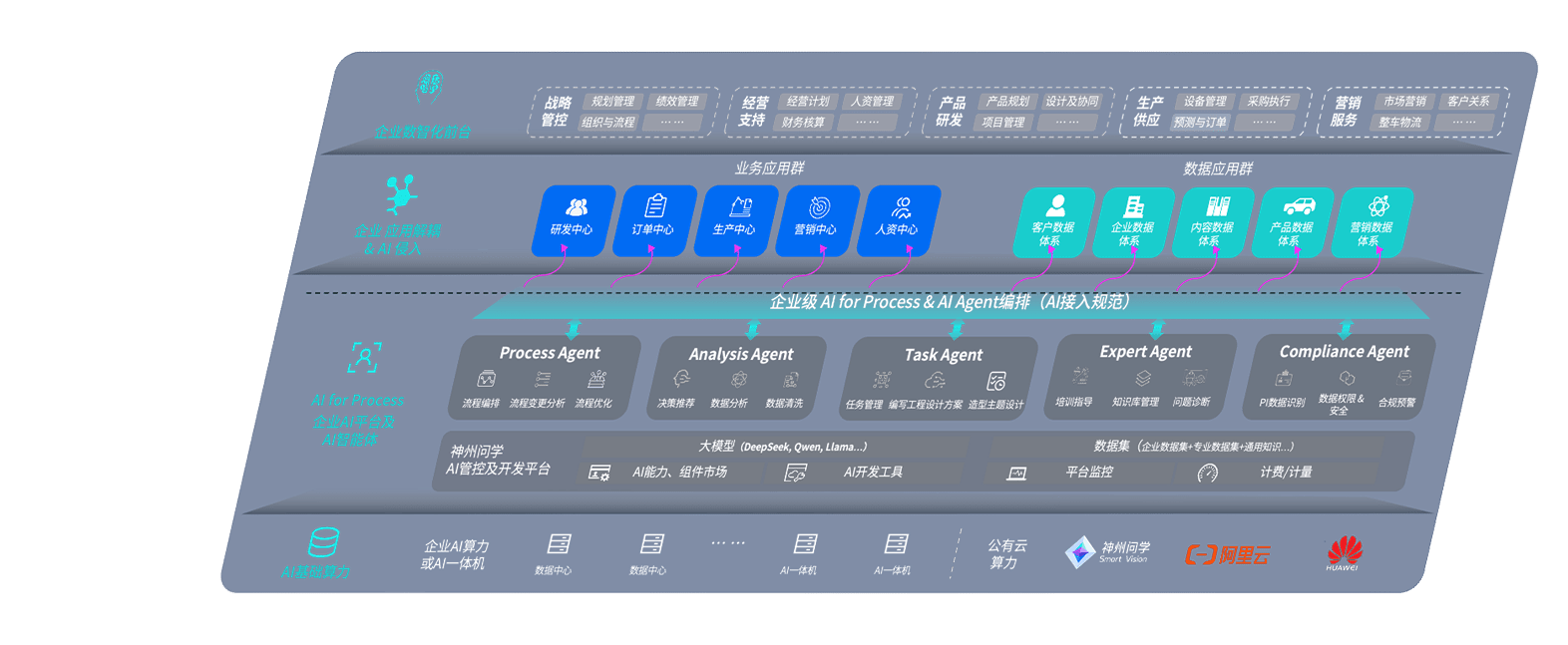 壹号娱乐问学智车解决方案是一套基于AI技术的汽车行业智能化系统,,覆盖从底层算力到顶层AI应用的全栈方案。。方案由算力层、、模型层和应用层组成:算力层,,方案支持多种一体机配置,,具备云端灵活部署、、、、多云适配以及动态优化计算资源的能力;模型层,,,壹号娱乐问学平台版提供了企业级AI应用一站式构建与管理平台,,支持基于后训练强化技术的汽车企业专属模型的训练、、、、评测和运营;应用层,,,壹号娱乐问学DeepSeek版提供包括超级员工、、、、智能招采、、、、智能营销、、、、智能客服、、、、AI for BI等一系列解决方案,,,,可助力汽车行业实现数字化转型,,让管理更智能、、响应更敏捷。。